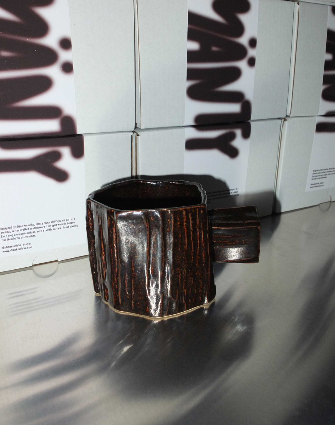 De Mänty Cups zijn onderdeel van een serie keramisch tafelgerei gebaseerd op afgedankte bomen. De keramische stukken zijn gemaakt van gekloofd hout. Tijdens het ontwerpproces worden alleen hout en bijl gebruikt om vormen te creëren voor porseleinen gietwerk. De cups zijn perfect voor een kop koffie of thee.